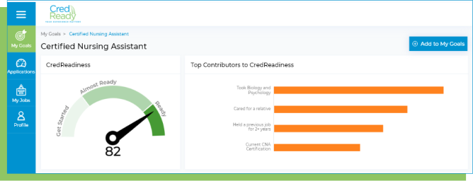 Your Career CredReadiness Score goes beyond your resume to assess your range of life and work experiences. With that information, we draw comparisons to millions of career pathways that may be a good fit for you.